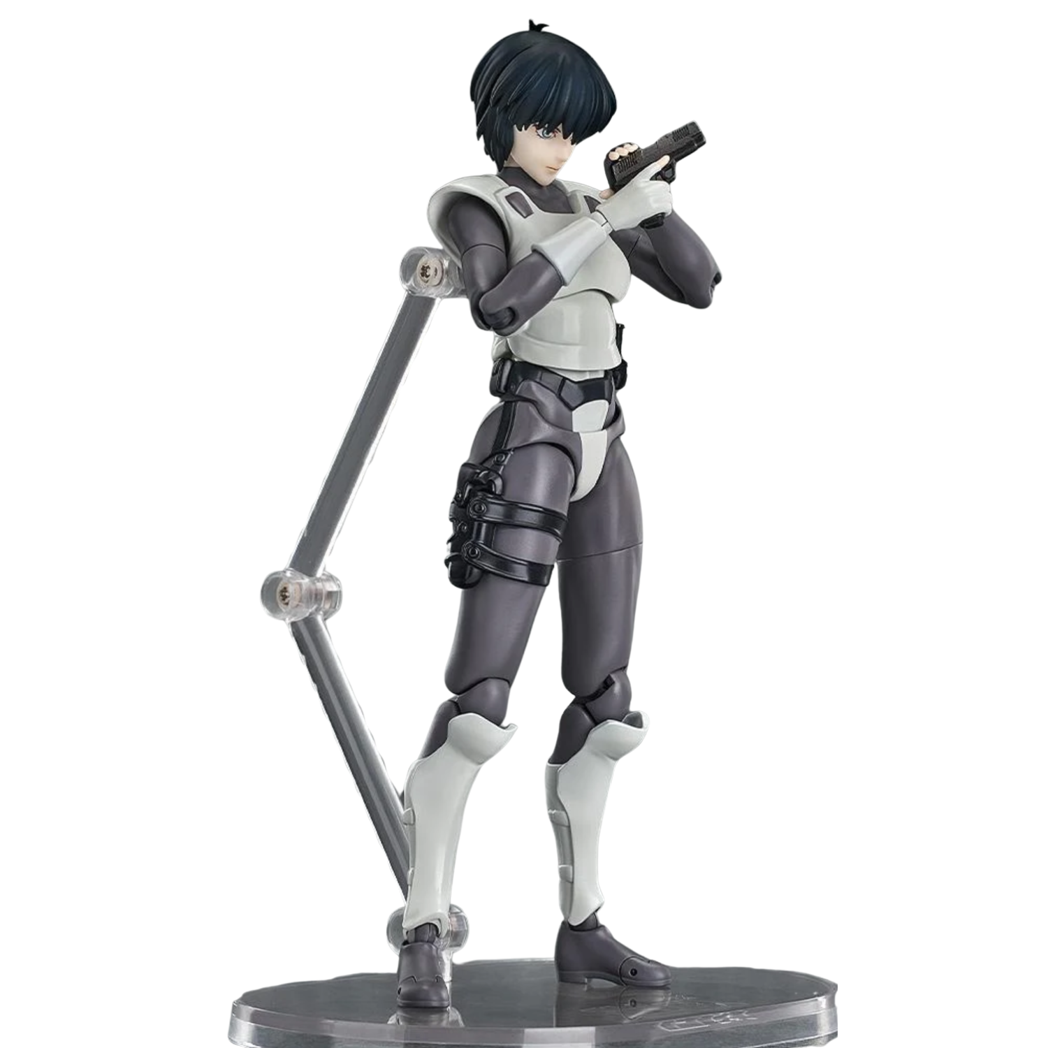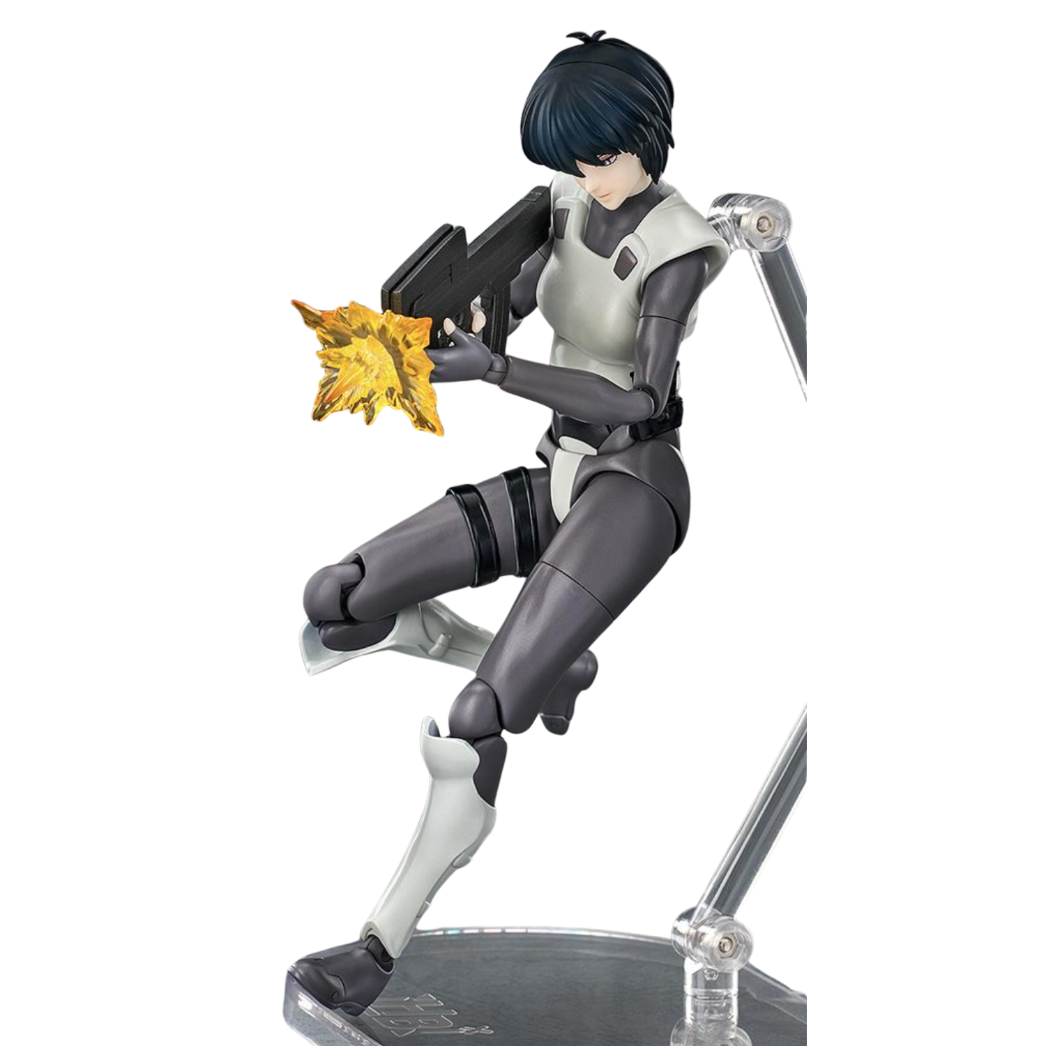 From the Ghost in the Shell anime, released in 1995, comes the first articulated figure of Motoko Kusanagi in her simple armored suit, in celebration of the movie's 30th anniversary. The figure comes with three face plates, including a standard face, a sidelong glancing face, and a shooting face. Optional parts include a submachine gun, pistol, and submachine gun firing effect parts. Be sure to add the stylish Major to your collection!