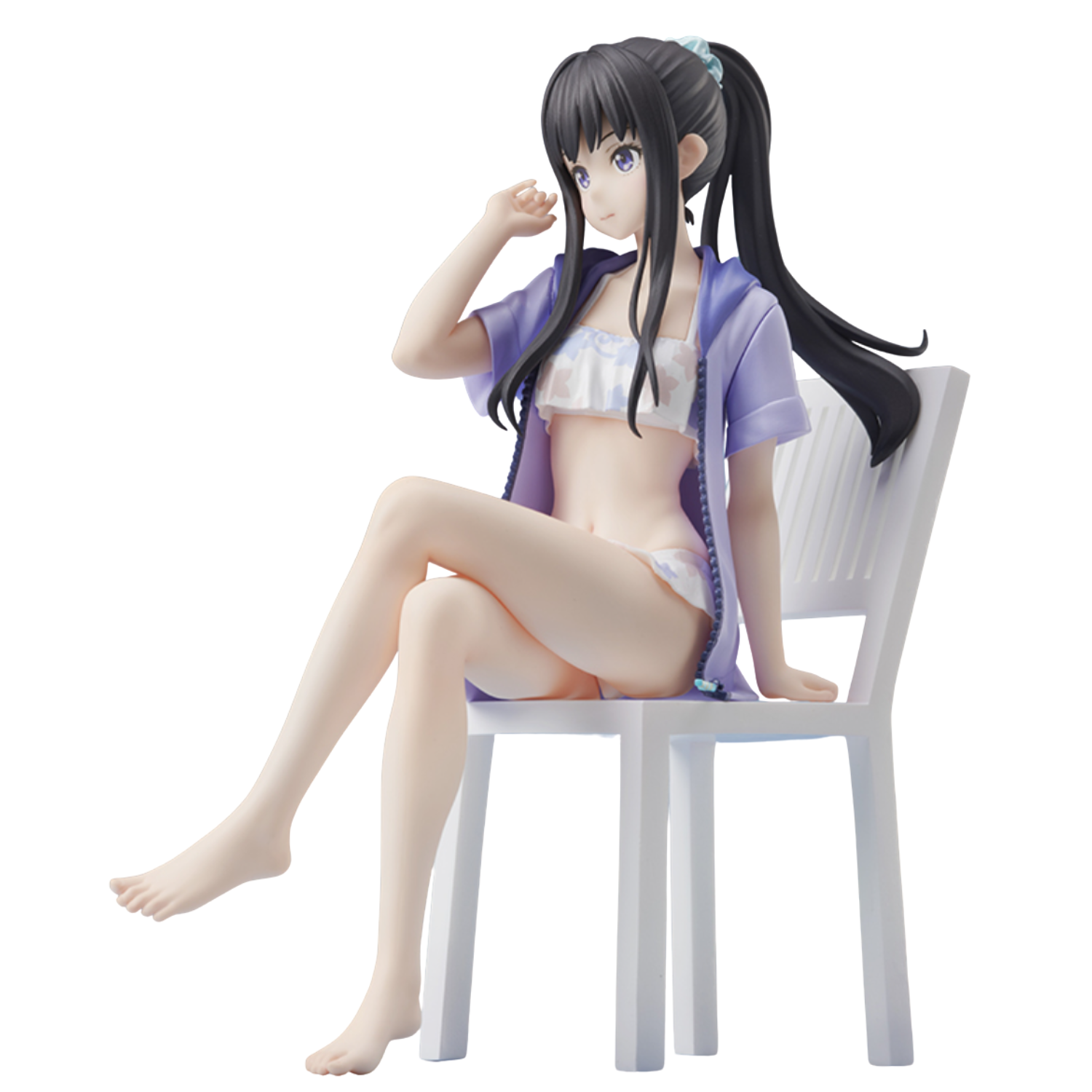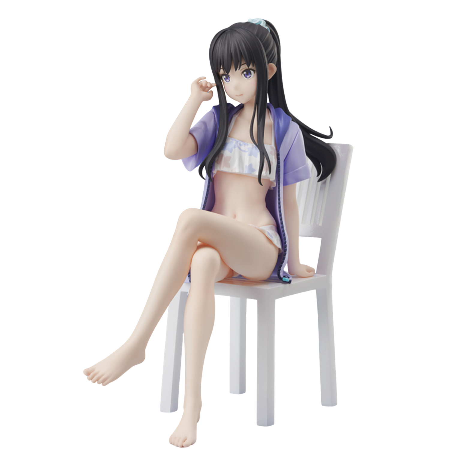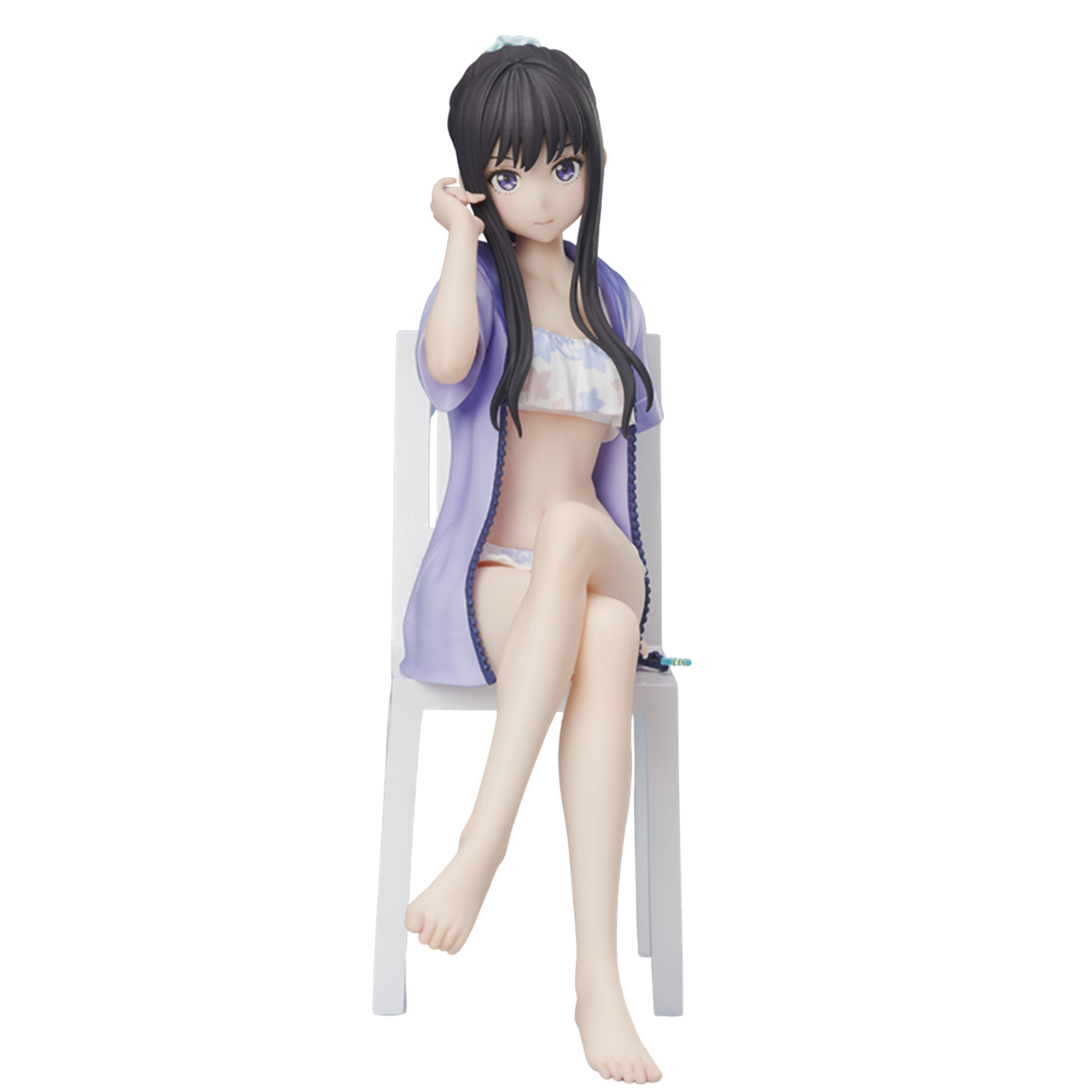 From the hit TV series Lycoris Recoil comes Takina Inoue in her adorable white bathing suit! This non scale figure has been created with the utmost care and attention to detail. The cool expression on her face coupled with her hair in a ponytail capture her youthful innocence. Place her on the included chair and have fun finding her a place in your display case! Lycoris Recoil fans, don’t hesitate to add the calm and collected Takina to your collection today!